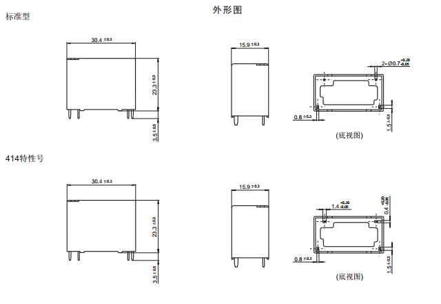 · 外形尺寸:(30.4 x 15.9 x 23.3) mm