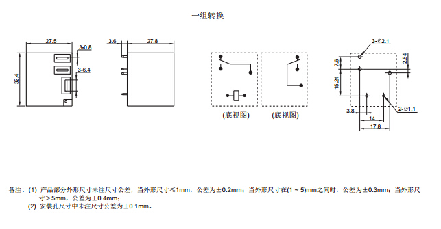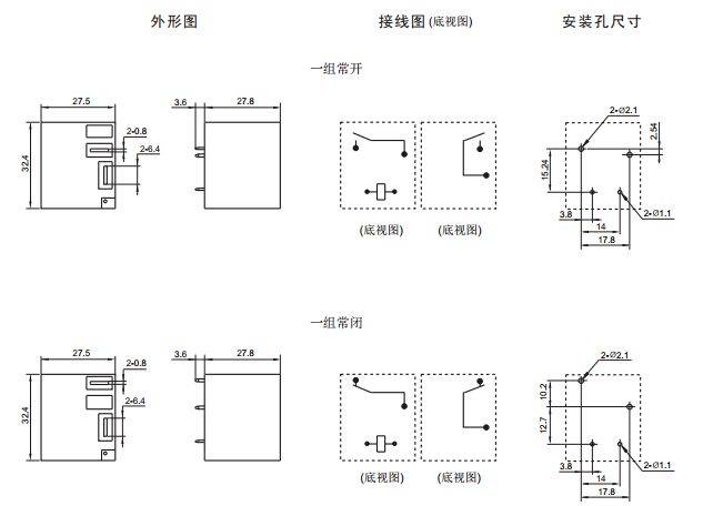 · 印制板式引出端,線圈、觸點(diǎn)快連接引出腳