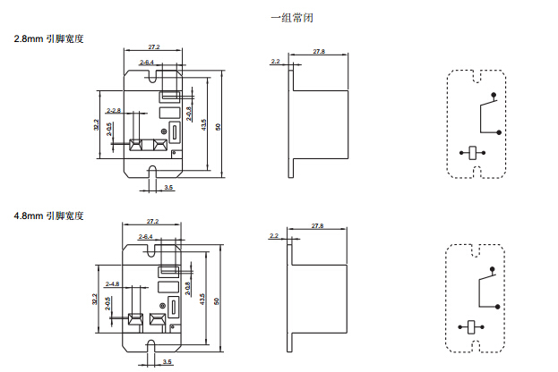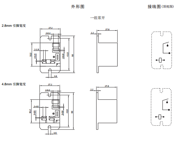 · 印制板式引出端,線圈、觸點(diǎn)快連接引出腳