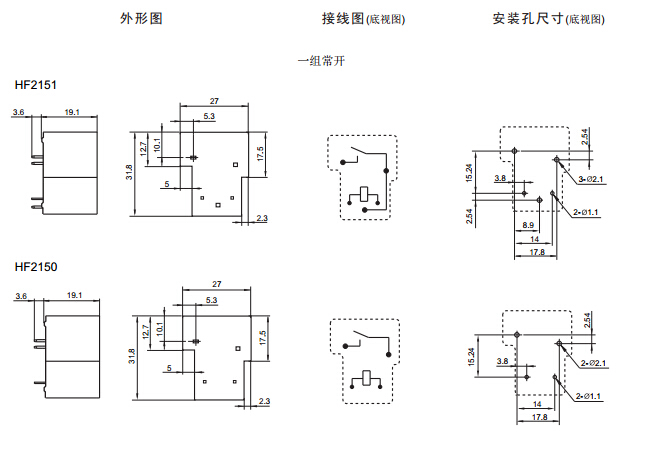 · 具有一組常開(kāi)、常閉、轉(zhuǎn)換觸點(diǎn)形式