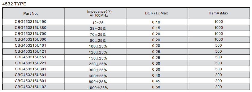 CBG453215U190鐵氧體疊層片式磁珠