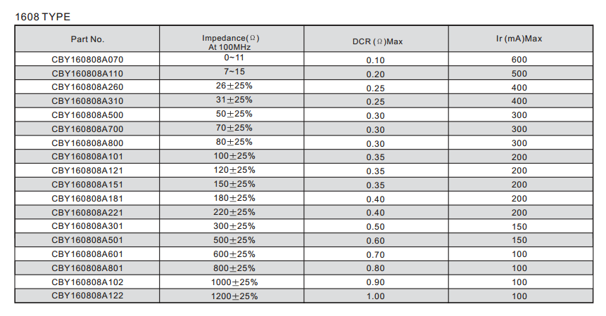 CBY160808A500T尖峰型磁珠