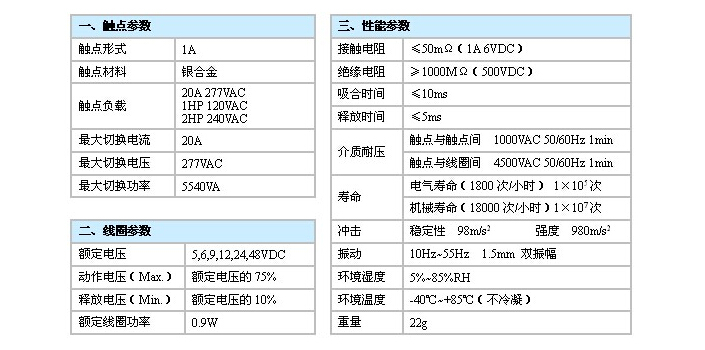 觸點(diǎn)容量:20A 277VAC,1HP 120VAC,2HP 240VAC