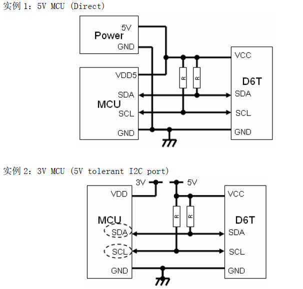 使用5V 及3V 電源時(shí)的連接實(shí)例
