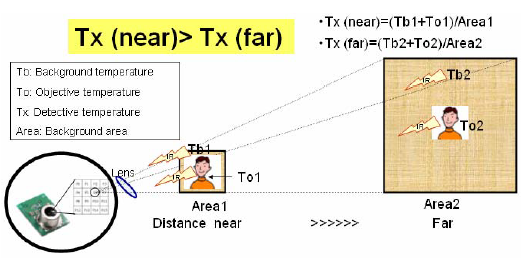 傳感器檢測(cè)目標(biāo)區(qū)域的平均溫度,檢測(cè)溫度隨對(duì)象物體的接近而增高。