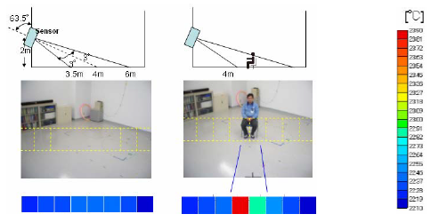 4x4 單元傳感器輸出各要素的16 種合計(jì)溫度值。有人存在時(shí),檢測(cè)到的溫度比較高。