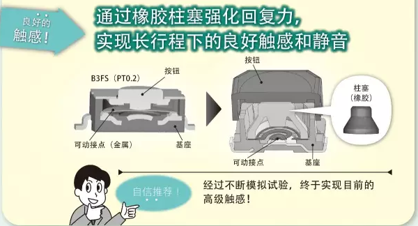 2、B3AL系列產(chǎn)品可有效解決輕觸開關(guān)的如下問題: