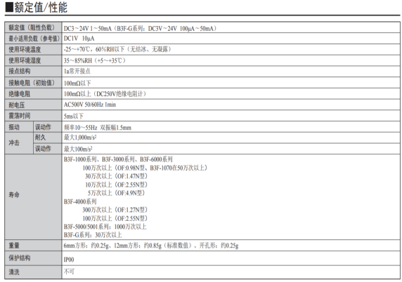 歐姆龍輕觸開關(guān)B3F系列,分別有6*6mm方形,12*12mm方形,橫向操作型,鍍金接點(diǎn),實(shí)現(xiàn)輕快觸感及高壽命可達(dá)1000萬次。