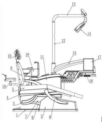 整個(gè)牙椅設(shè)備的簡(jiǎn)化圖如下圖:
