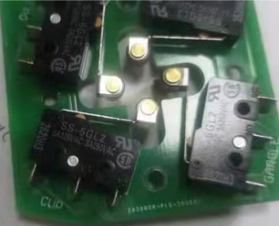 如上圖,把電路板固定在結(jié)構(gòu)件上,中間留有一個(gè)控制軸 ,當(dāng)軸轉(zhuǎn)動(dòng)到一個(gè)位置,觸碰微動(dòng)開關(guān),微動(dòng)開關(guān)傳輸出信號(hào)??刂贫肆私獾捷S承轉(zhuǎn)到微動(dòng)開關(guān)相對(duì)應(yīng)的位置,控制端進(jìn)行下一步動(dòng)作。