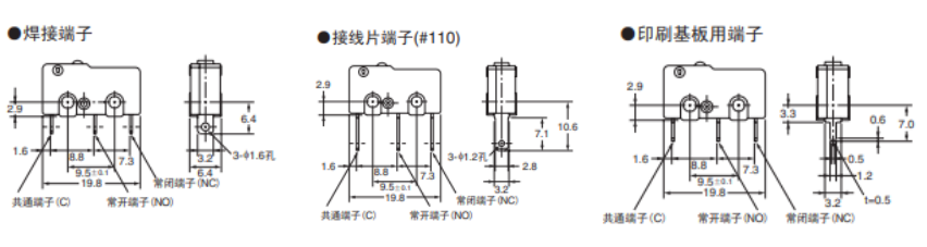 SS系列的開關(guān)具有多種焊接方式方便選型和安裝方式: