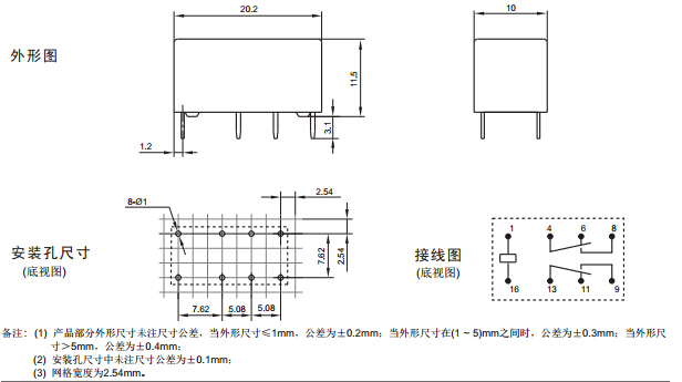 · 外形尺寸:(20.2 x 10.0 x 11.5) mm