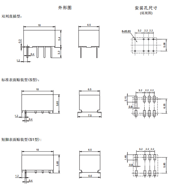 · 外形尺寸:(10.0 x 6.5 x 5.4) mm