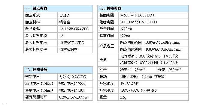 觸點容量:1A 125VAC/24VDC