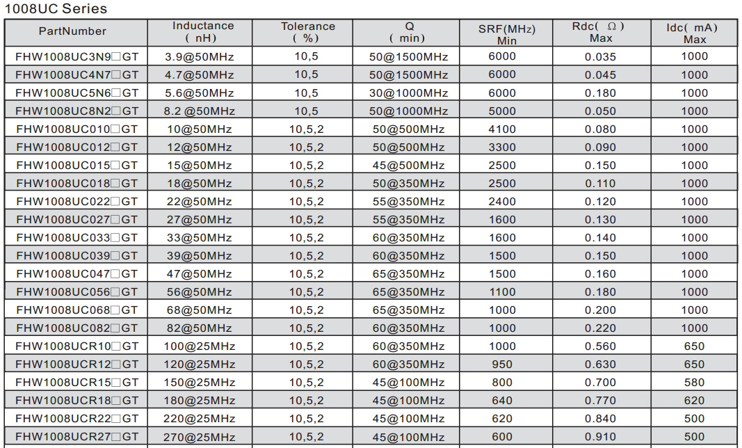 1008鐵氧體疊層片式電感