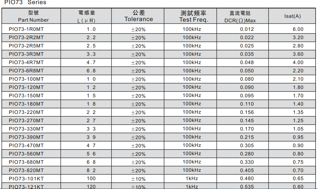 PIO73-1R0MT功率電感