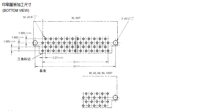 ? 與基板的連接為4列交錯(cuò)配置(1.27mm x 1.905mm)。
