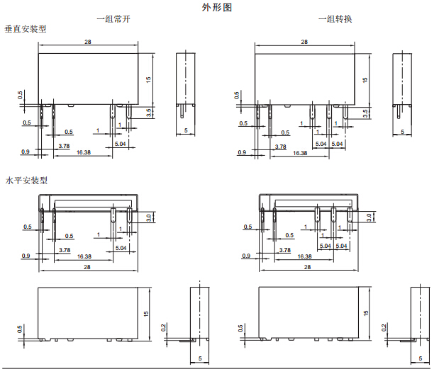 · 外形尺寸:(28.0 x 5.0 x 15.0)mm