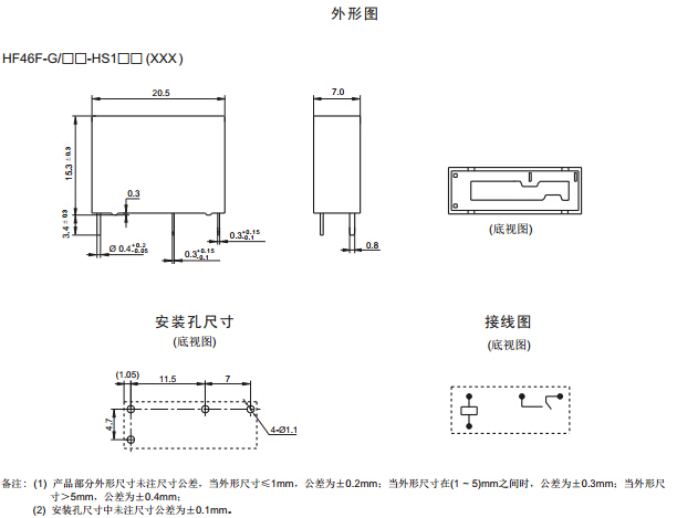 · 外形尺寸:(20.5 x 7.2 x 15.3) mm