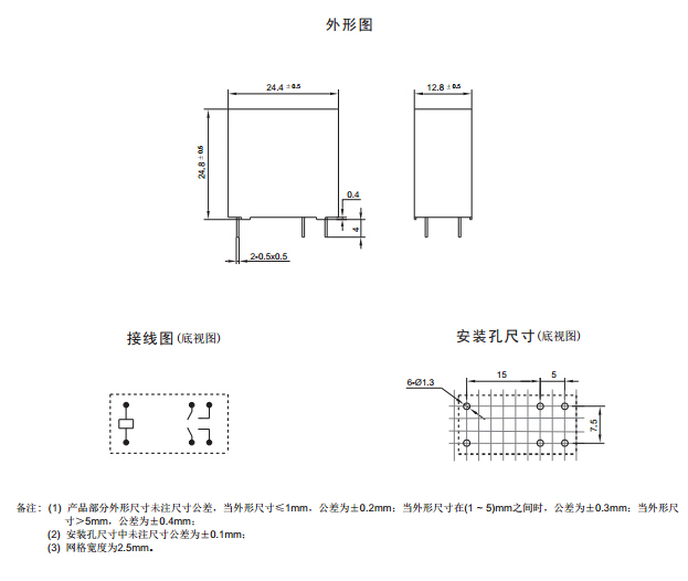 · 外形尺寸:(24.4 x 12.8 x 24.8) mm