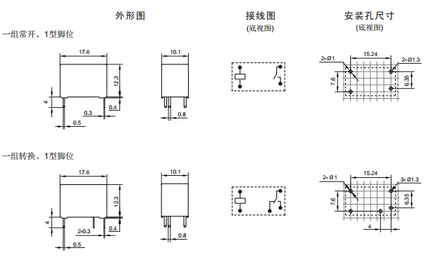 · 具有一組常開、一組轉(zhuǎn)換觸點形式
