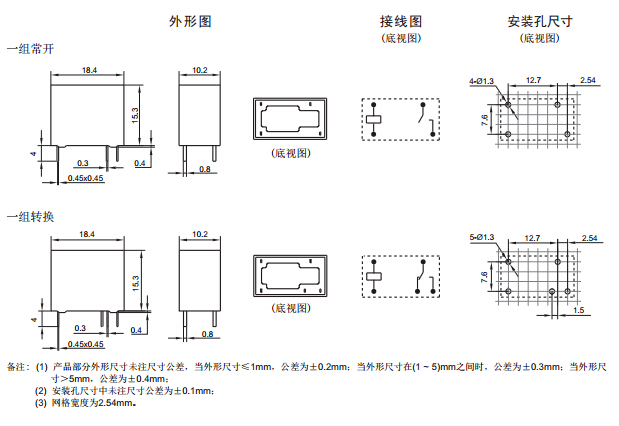 · 具有一組常開、一組轉(zhuǎn)換觸點(diǎn)形式