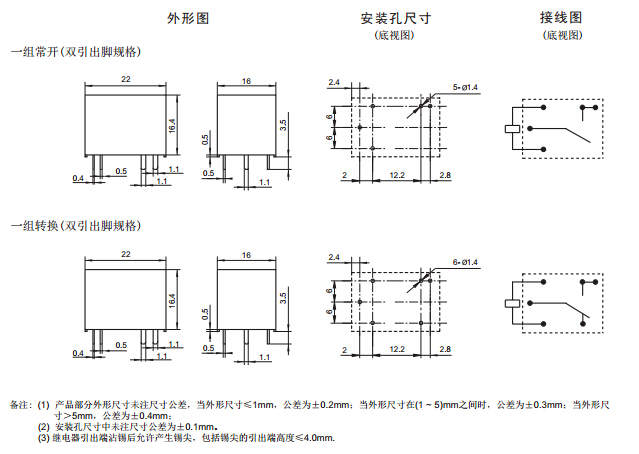 · 外形尺寸:(22.0 x 16.0 x 16.4) mm