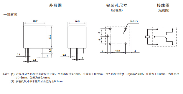· 外形尺寸:(20.2 x 16.5 x 20.2) mm
