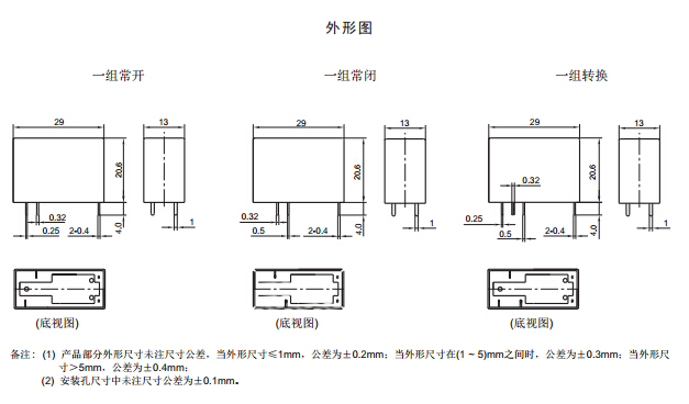 · 外形尺寸:(29.0 x 12.6 x 20.6) mm