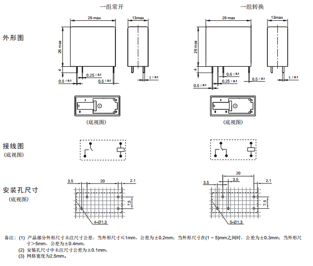 · 具有一組常開、一組轉(zhuǎn)換觸點形式
