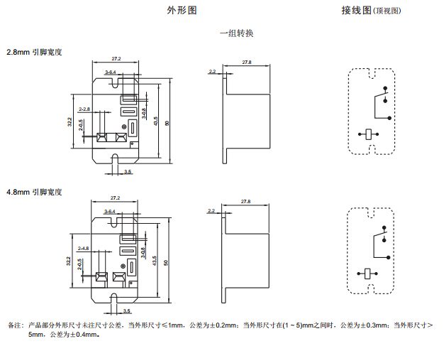 · 印制板式引出端,線圈、觸點(diǎn)快連接引出腳