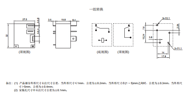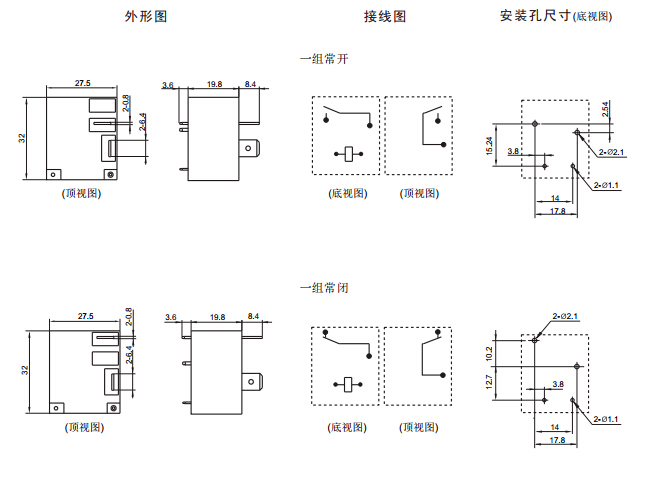 · 具有一組常開、常閉、轉(zhuǎn)換觸點(diǎn)形式