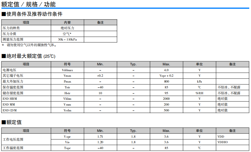 產品說明:高精度·低消耗電流的小型MEMS絕對壓力傳感器 高精度地測量氣壓 內置低干擾的24bit ADC 基于I2C/SPI 接口的數(shù)字控制/輸出 在自動睡眠模式下實現(xiàn)低消耗電流 單獨的補償系數(shù)保存在OTP*中 (* One Time Programmable - ROM)