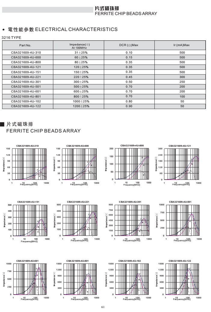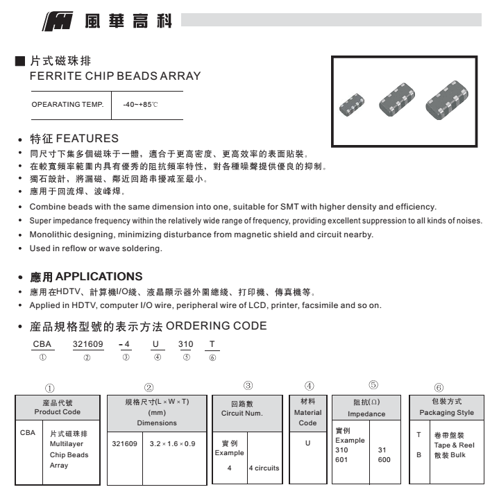 特征: 同尺寸下集多個(gè)磁珠于一體,適合于更高密度、更高效率的表面貼裝。 在較寬頻率范圍內(nèi)具有優(yōu)秀的阻抗頻率特性,對(duì)各種噪聲提供優(yōu)良的抑制。 獨(dú)石設(shè)計(jì),將漏磁、鄰近回路串?dāng)_減至最小。 應(yīng)用于回流焊、波峰焊。 應(yīng)用: 應(yīng)用在HDTV、計(jì)算機(jī)I/O線、液晶顯示器外圍總線、打印機(jī)、傳真機(jī)等。