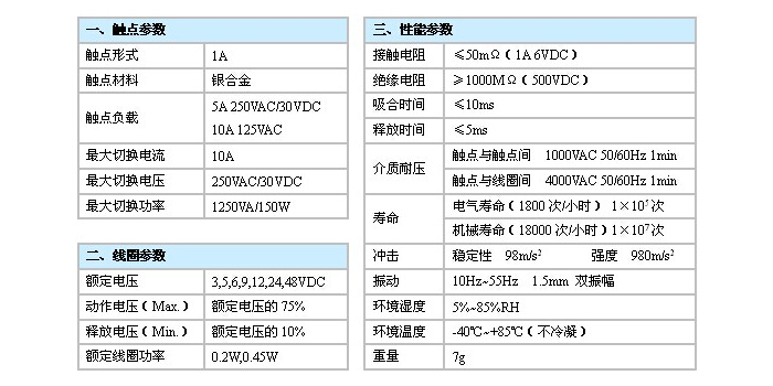 觸點(diǎn)容量:5A 250VAC/30VDC,10A 125VAC