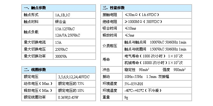 觸點容量:15A 125VAC,12A/7A 250VAC