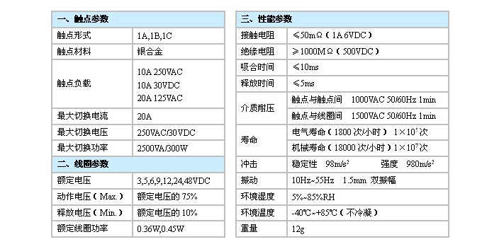 觸點(diǎn)容量:20A 125VAC,10A 250VAC/30VDC