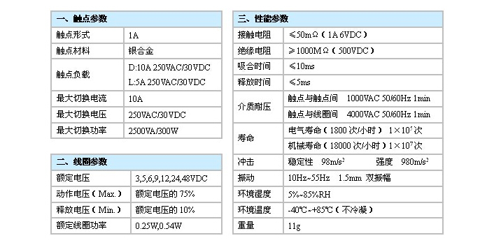 觸點(diǎn)容量:D:10A 250VAC/30VDC L:5A 250VAC/30VDC