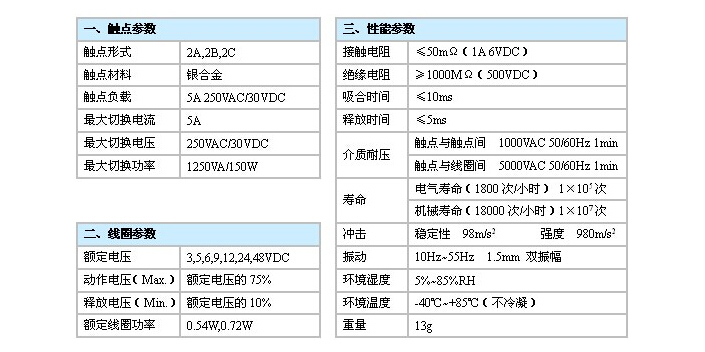 觸點(diǎn)容量:5A 250VAC/30VDC
