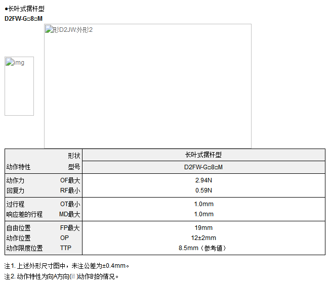 產(chǎn)品說明:D2FW-G M4安裝密封性基本開關(guān)