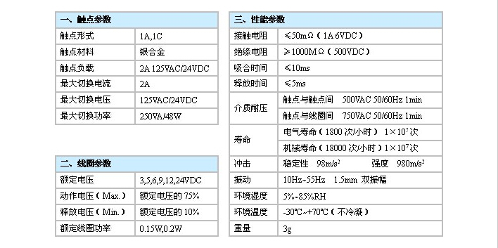 觸點容量:2A 125VAC/24VDC